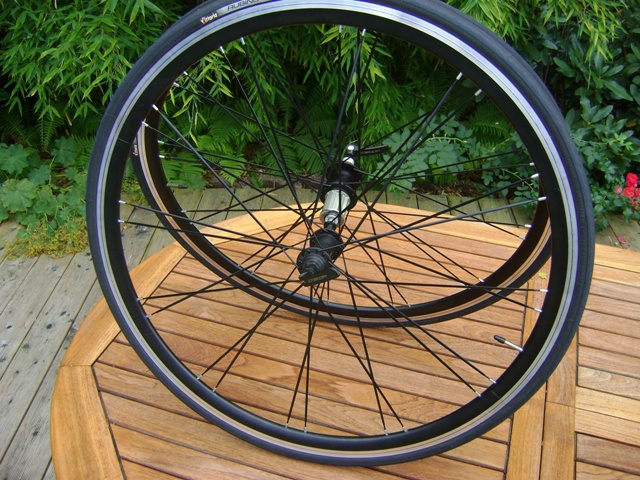 Systemlaufradsatz mit Vittoria Bereifung. Sparsame Speichenzahl, die aber durch das hohe Felgenprofil den
