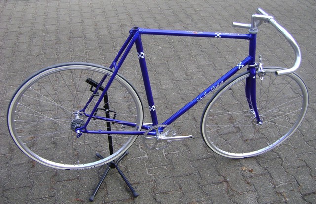 Rahmen ist teilweise von Anlötteilen gecleant ( Bremse hinten ). Alugabel mit altem Crosslenker.