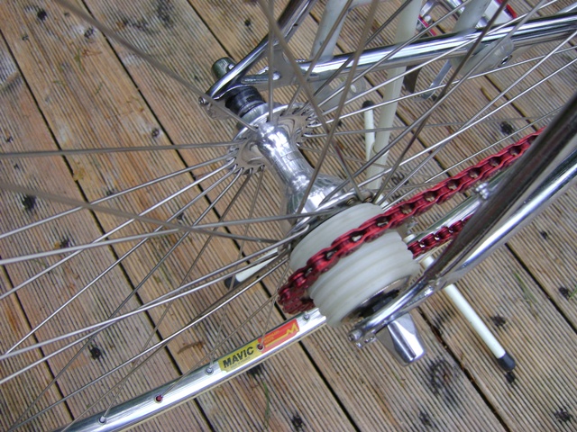 des einen Ritzels.Der Lockring fixiert alles. Schön leicht und ungewöhnlich. Die Nabe ist auf