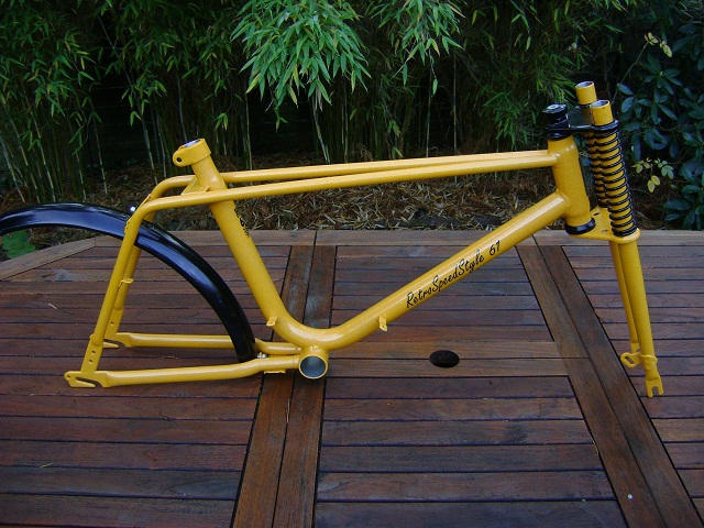 Das sieht doch schon grell aus. Der Rahmen ist jetzt schon in Teilen rückmontiert. Aber viele Parts benötigen