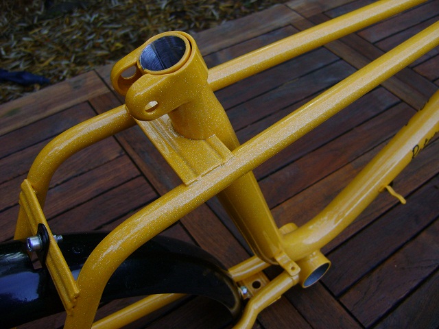 Blick auf die berabeitete Sattelklemmung, Hier ist auch die Glitterbeschichtung schon schön zu erkennen.