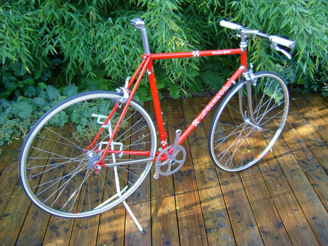 vorne nur in 2 fach Kreuzung bei 32 Loch. Alle Teile gereinigt und auf Hochglanz poliert. Gerader Lenker in Kombi mit alten Campa