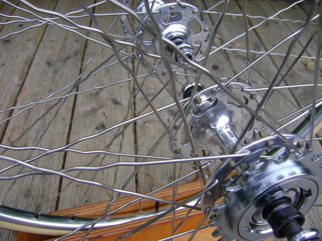 am ersten Tag. Wie immer mit Messingscheiben gespeicht um jegliches Wackeln in den Naben zu