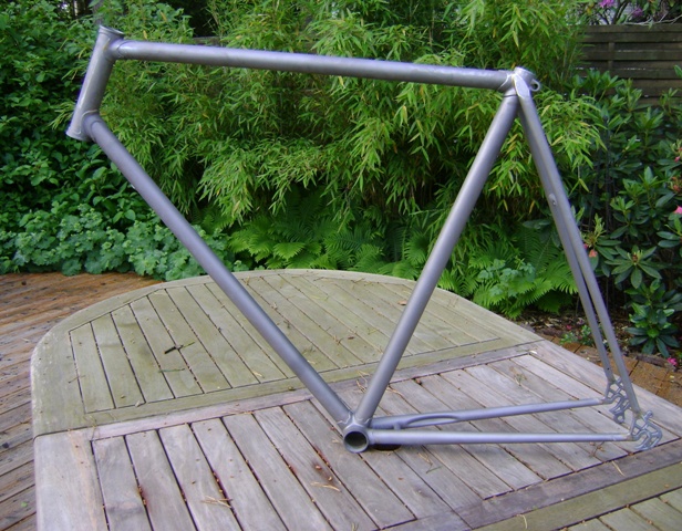 Gestrahlter Rahmen, Grate verschliffen, Sitzrohr ausgerieben, entfettet und nun bereit