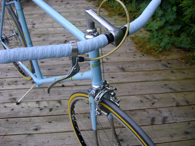Die Lenkzentrale. Der Steuersatz von Stronglight - eben französich - dazu ein alter aufgearbeiteter Aluvorbau, gebohrt