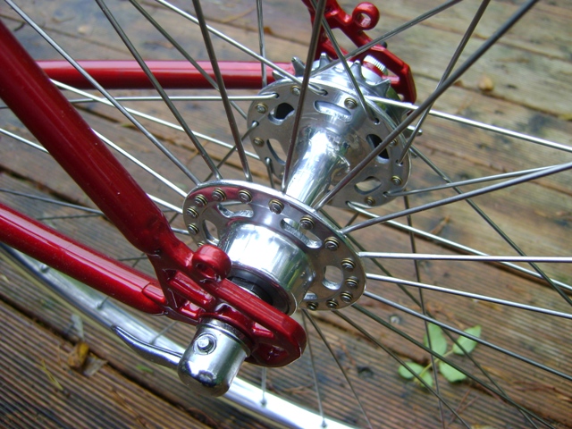 Blick ins Hinterrad und die schöne Einspeichung. Wer will da schon modernes Zeug drin sehen. Leider ist es schwierig diese Suzue