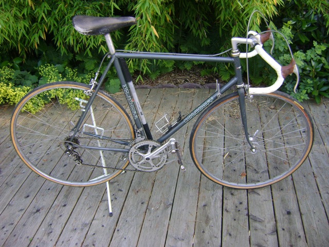 Kalkhoff Rennrad in den Hof. Kalhoff ist ja nicht unbedingt eine mit "coolness" belegte Marke.