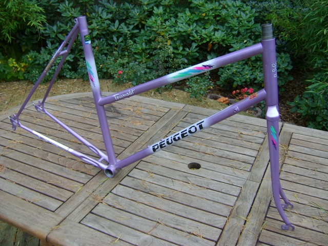 Angekaufter alter Tourmalet Rahmen in 52cm von Peugeot. Rahmen wird nun zerlegt, gecleant, gestrahlt und beschichtet. Auch die