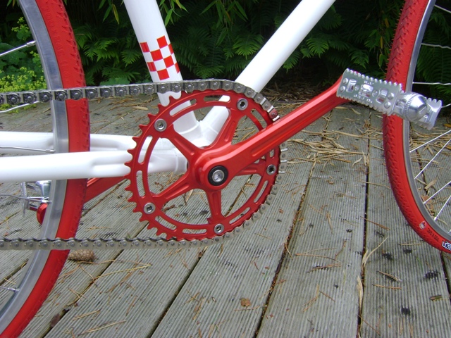 in der Mitte des Rades. Kleine MKS Stream Pedale - genug Fläche für kleine Frauenfüße.