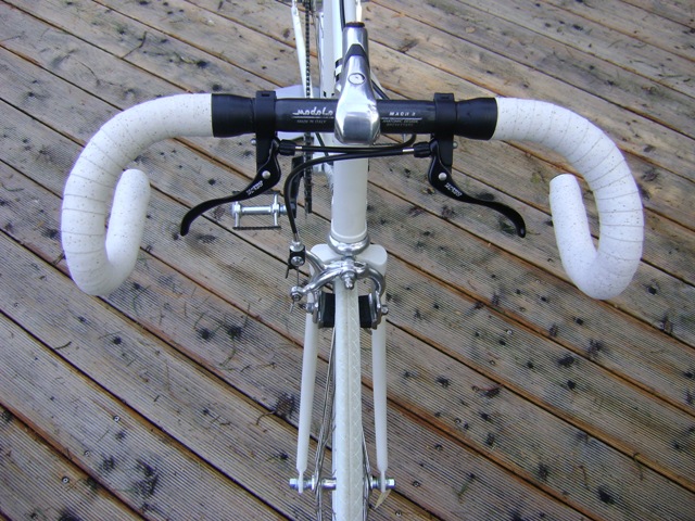 Die Steuerzentrale. Klassicher Rennlenker mit ebensolchem Vorbau von Modolo. Superkleine Hebel