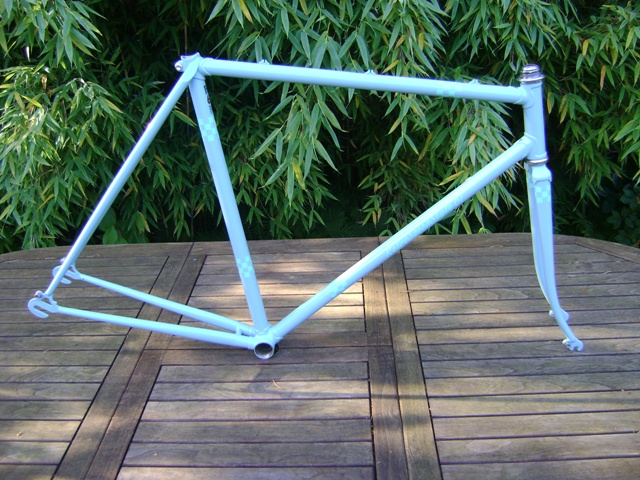 Fertig aufgebauter Rahmen. Der alte Steuersatz mußte wegen der geringen Bauhöhe wieder an seine Platz.