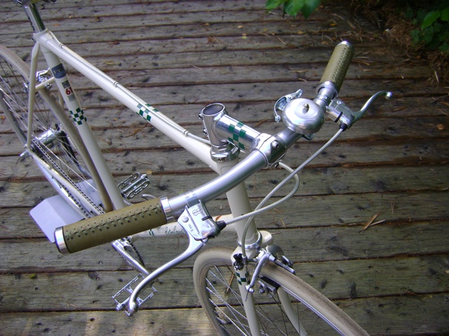 Bremsgriffe, die alte 600ter Shimanos bedienen. Dazu superschöne Stahlflexhüllen. Hier sieht man