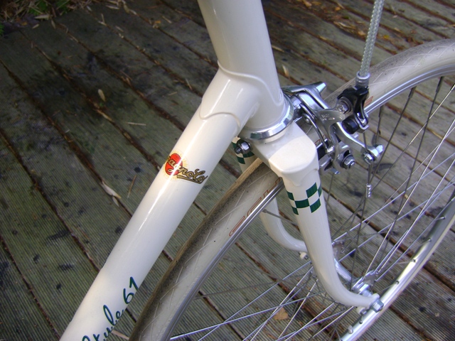 Nochmal ein Blick auf die untere Front. Natürlich neuer Steuersatz, cooler alter Campaaufkleber und