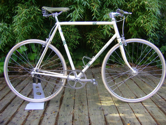 Nabe hinten mit Freilauf, vorne NOS Suzue, Mavic Sport Felgen, DD Edelstahlspeichen von DT Swiss, TCQ Sattelstütze mit Gyes