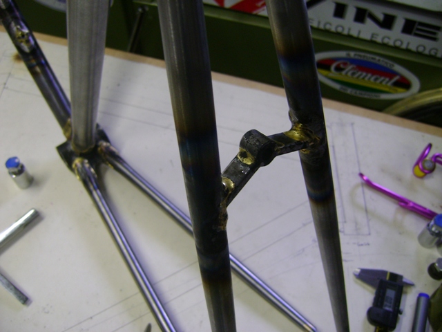 wird der Hinterbau kurz mit einer Klammer gespannt und dann wieder frei zu Ende gebracht. Hier ist grausig viel Flussmittel zu sehen!