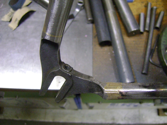Ein Blick auf das schöne Bahnradausfallende. Gut zu sehen ist die bereits fertig verschliffene Steckverbindung. Die zweite Verbindung