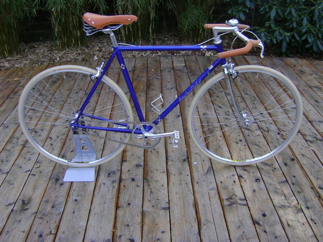 Fertig für die Strasse. Schöner lasurblauer Rahmen und mit etwas dickeren Reifen perfekt für