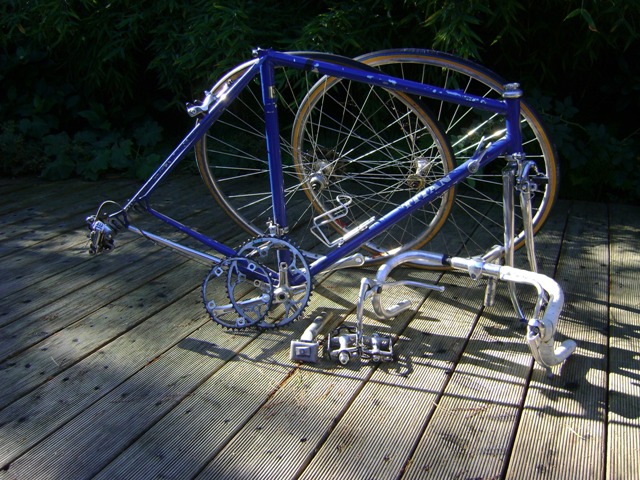 lasurblau beschichtet und mit klassischen Teilen zum Singlespeeder aufgebaut. Naturlederparts sind geplant!