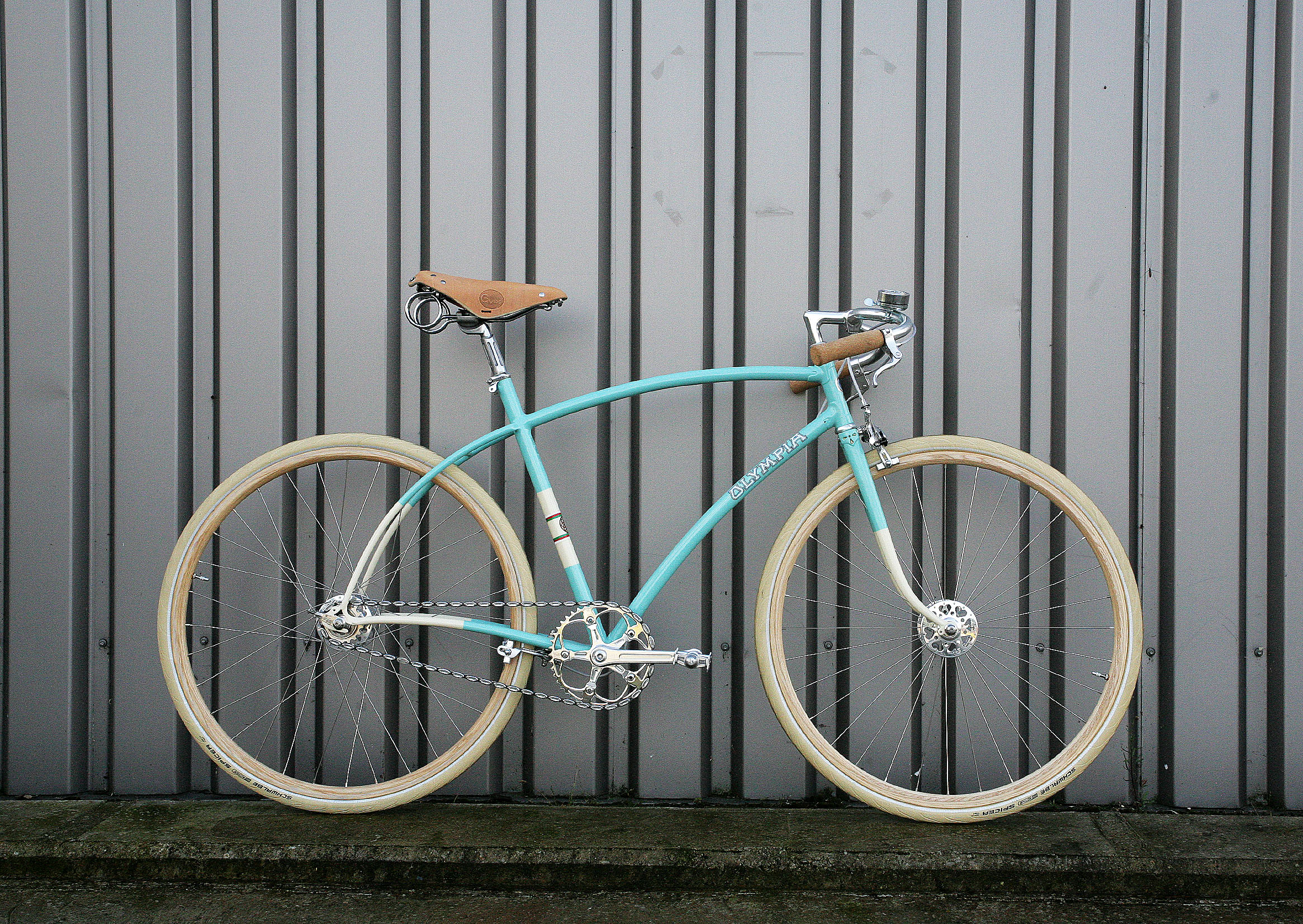 Sellavia Sattel in Leder, Griffe Kork, Bremsen restaurierte Originale mit Korkbelag, Edelstahlzüge, Speedstick Hebel, BLB London Kurbel,